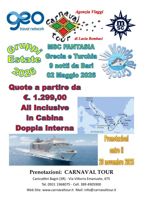 MSC FANTASIA 02 Maggio 2026 da Bari
